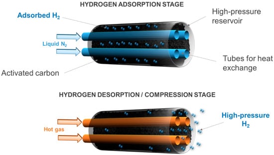 - Sdanghi, G.; Nicolas, V.; Mozet, K.; Schaefer, S.; Maranzana, G.; Celzard, A.; Fierro, V. A 70 MPa hydrogen thermally driven compressor based on cyclic adsorption-desorption on activated carbon. Carbon 2020, 161, 466–478. [Google Scholar] [CrossRef]
