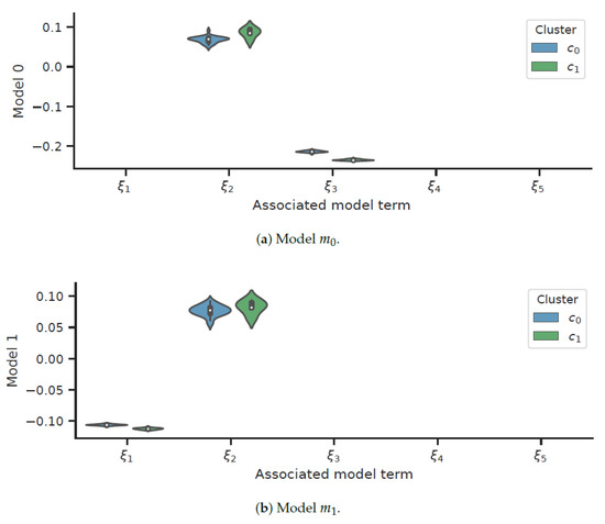 Identifying models using Algorithm 1, we obtained the coefficient distributions for each cluster and illustrated in Figure 1. The uncertainty in the dynamics and led to uncertainty in the magnitudes of the model coefficients.