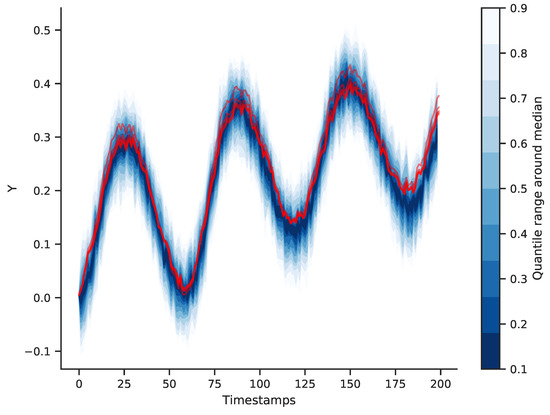 Improving the prior optimizes the sampling space for a new MCMC sampling. This can lead to shorter computation time for future sampling of the model. Examining the PPC illustrated in Figure 5a reveals that the model approximated the observed output sub-optimally, yet captured the general trend in the data. By means of random draws from the posterior samples, we could obtain a probabilistic model. Out-of-sample co-simulation of this model alongside the five samples of the true system is depicted in Figure 6.