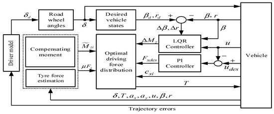 - Ding, H.T.; Guo, K.H.; Chen, H. LQR method for vehicle yaw moment decision in vehicle stability control. J. Jilin Univ. (Eng. Technol. Ed.) 2010, 40, 597–601. [Google Scholar]