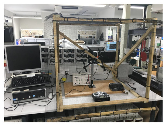 - Foudeh, H.A.; Luk, P.; Whidborne, J.F. Quadrotor System Design for a 3 DOF platform based on Iterative Learning Control. In Proceedings of the 2019 Workshop on Research, Education and Development of Unmanned Aerial Systems (RED UAS), Cranfield, UK, 25–27 November 2019; pp. 53–59. [Google Scholar]