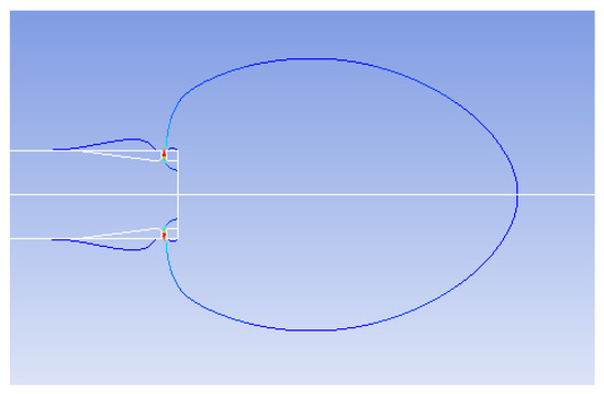 Since the gap that the fuel jet goes through is small, the influence of the near-wall boundary layer needs to be well resolved in meshing. In some turbulence models, the near-wall function must be used. The enhanced wall treatment is used to calculate the gap flow, and the thickness of the first layer near-wall grid is 0.0014 mm to make sure y+ ≈ 1. For the purpose of an optimal time consumption while ensuring simulation accuracy, the entire flow area is divided into several parts while meshing the model. The grid is refined in the vicinity of the jet injection area and the recirculation area, while in other areas the grid can be thicker. The solver fluent is used, and axisymmetric two-dimensional numerical simulations were carried out. In order to evaluate the mesh independence, the grids with numbers of 59,600, 119,200, and 171,000 were independently verified. When the grid number exceeded 119,200, the calculated results of the backflow recirculation boundary agreed with each other. Therefore, a grid with a cell number of 119,200 is selected in current simulations.