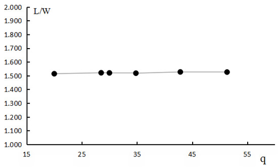 Length/width ratio with different momentum ratio q.