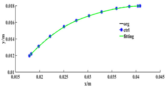 The parameterization of the camber line of the tandem blade and the parameterization of the thickness distribution of the tandem blade were the same as Reference [3] and accomplished by the NURBS method with 12 control points. Compared with the traditional polynomial method, the NURBS method can parameterize complex curves with fewer control points. Besides, the NURBS parameterization method can realize partial modification of complex curves and effectively reduce the number of optimization variables. Figure 6 and Figure 7, respectively, show the parameterization of the camber line and the bound and the rand of the camber line during optimization. In the picture, the ctrl and fitting present the NURBS control points and NURBS line. And the rand presents the sample of the camber line during optimization.