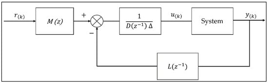 where u and are the control inputs and the system output sequences of the plant, respectively, , and are the polynomial Z-function, is the variation operator , and represents the disturbance (white noise). Therefore, the main objective is to convert our state-space model into CARIMA form as follows: