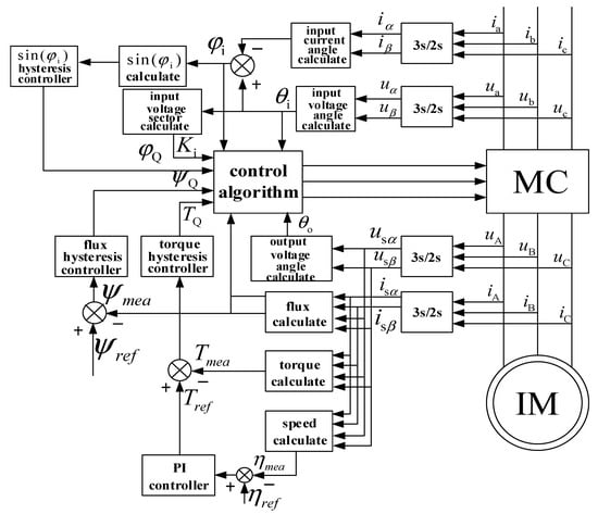 3.2. The Principle of Direct Matrix Converter-Direct Torque Control System of Asynchronous Motors