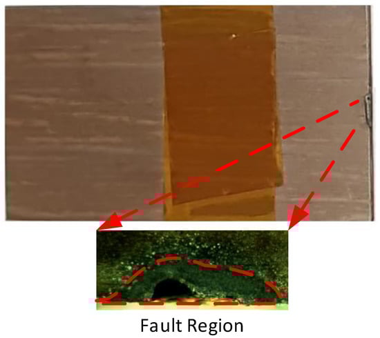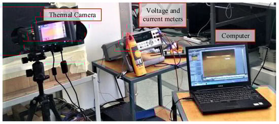 In this study, two samples of different fault widths were measured. The faults were imposed on the samples by using different laser beam weld widths. The measured sample surface was painted black to improve the accuracy of the measured temperature rise. The infrared camera is calibrated for the measurements, as shown in Table 2. A DC current of 20 A is first supplied to each of the experimental samples at ambient temperature conditions.
