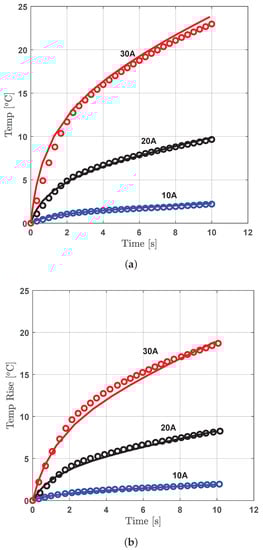 Finally, the measured surface temperature rise from the fault region is compared with the predicted temperature rise for each current supply case in Figure 9. The results show that for each supply case, the predicted temperature rise closely follows the measured temperature rise for the two studied samples.
