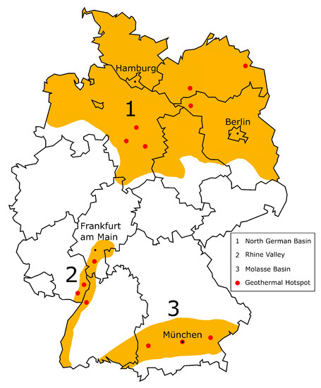 - Weber, J.; Born, H.; Moeck, I.S. Geothermal Energy Use, Country Update for Germany 2016–2018. In Proceedings of the European Geothermal Congress 2019, Den Haag, The Netherlands, 11–14 June 2019. [Google Scholar]