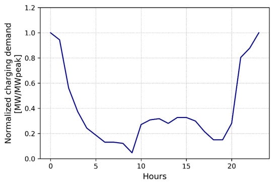 For the heating and cooling sector, M. Noussan et al. [61] presented an insightful analysis on building heating systems for the most populated Italian region by means of open data. However, from a national perspective there is a lack of updated open data. Therefore, the Heat Roadmap Europe 2015 baseline is taken as it is without changes. Few modifications in the mobility sector are implemented instead. Benini et al. [52] analyzed the Italian mobility sector identifying an electricity demand from the mobility sector in 2015 equal to 0.87 TWh. The same report also provides the hourly distribution of electricity demand from electric mobility (shown in Figure 3). This profile is assumed to be the same for each day of the year.