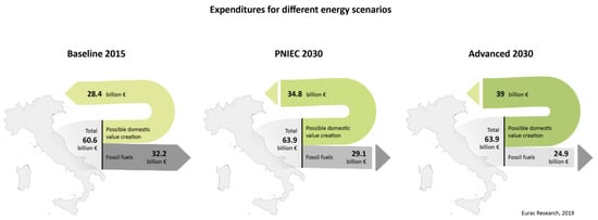 The results also showed the economic opportunity represented by energy transition. The study of the nature of the costs showed how, moving from the Baseline 2015 to the Advanced 2030 scenario, the costs for fossil fuels decrease and the possible domestic value creation increases. This represents an opportunity of development of investments in the territory and a boost to local economy. Therefore, even if the study showed the need for an energy system characterized by higher costs compared to the Baseline 2015, it also highlighted the opportunities represented by the energy transition.