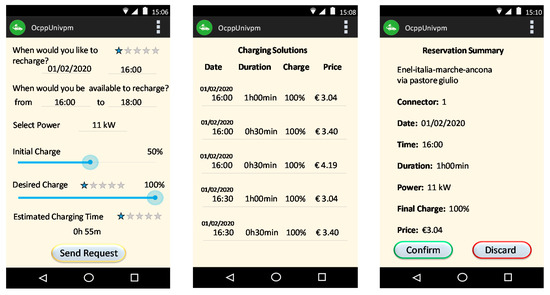 The key messages FindBestSolutionsRequest and FindBestSolutionsResponse will be detailed in the next subsections. Then, the cost and satisfaction functions will be defined. Finally, the charge reservation flow and the developed app will be described.