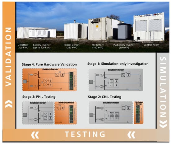 - Brandl, R.; Kotsampopoulos, P.; Lauss, G.; Maniatopoulos, M.; Nuschke, M.; Montoya, J.; Strasser, T.I.; Strauss-Mincu, D. Advanced Testing Chain Supporting the Validation of Smart Grid Systems and Technologies. In Proceedings of the 2018 IEEE Workshop on Complexity in Engineering (COMPENG), Florence, Italy, 10–12 October 2018; pp. 1–6. [Google Scholar] [CrossRef]