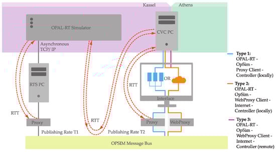 - Montoya, J.; Brandl, R.; Vogt, M.; Marten, F.; Maniatopoulos, M.; Fabian, A. Asynchronous Integration of a Real-Time Simulator to a Geographically Distributed Controller Through a Co-Simulation Environment. In Proceedings of the IECON 2018—44th Annual Conference of the IEEE Industrial Electronics Society, Washington, DC, USA, 21–23 October 2018; pp. 4013–4018. [Google Scholar] [CrossRef]