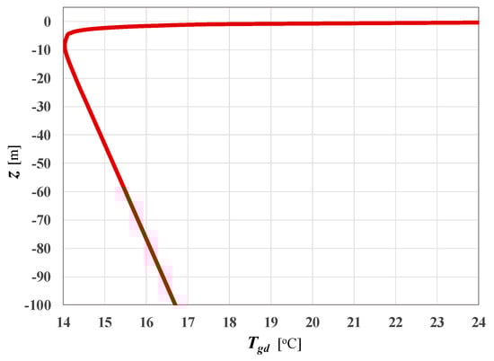 The mean value of the Tgd between 0 and 100 m and between 0 and 200 m turned out to be 15.31 °C and 16.75 °C, respectively. Figure 2 demonstrates the profile of Tgd between 0 and 100 m.
