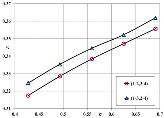Figure 11 illustrates variations of ε with shank spacing in the steady-flux condition for both configurations of the BHE with L = 100 m. The figure shows that ε increases with dimensionless shank spacing, σ, and that configuration (1-3,2-4) gives a slightly higher ε compared with configuration (1-2,3-4). However, the increment of ε with shank spacing is insignificant; by maximally increasing the shank spacing (40 mm), the thermal effectiveness value increases almost 0.04.