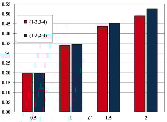 For configuration (1-2,3-4), the higher value of the effective thermal resistance (presented in Figure 7) and higher thermal interference between tubes (presented in Figure 5) are evidence of the impact of thermal short-circuiting on the thermal performance of this kind of circuit arrangement.