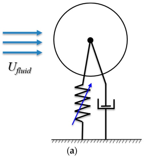 For the natural frequency of the oscillating cylinder, Lee and Bernitsas 2011 [7] have shown how the onset of the regions of VIV shift (Figure 1) with respect to the flow velocity. The spring-stiffness is one of the key parameters when designing an FIO/V-based converter such as VIVACE [8]. For a lower stiffness linear oscillator, the initial branch starts at lower flow velocity and the upper branch also ends earlier. At higher stiffness, the upper branch shifts to much higher flow velocity but the initial oscillation velocity is lower. It was proven that the higher the natural frequency of the converter, the more energy can be obtained in the VIV upper branch. One of the promising directions of research is to make the natural frequency of the oscillator vary nonlinearly [9,10]; for example, by designing the spring-stiffness to be position-dependent.