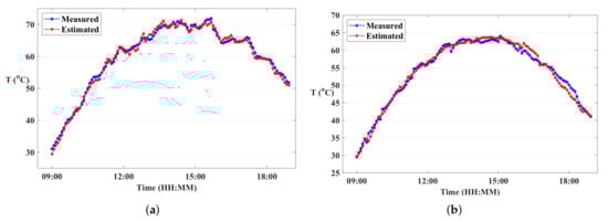 The increasing need for electricity and the risks of environmental pollution and global warming are the main problems increasing the interest in renewable and clean energy sources []. Solar energy sources using photovoltaic (PV) modules recently have the main focus among other renewable sources. This is due to several reasons such as the abundance of the solar irradiance, the photovoltaic (PV) phenomenon, by which a direct conversion is achieved from solar radiation to electricity, employable at both small and large scale, non-polluting, clean and reliable energy sources. The increase in the temperature of the silicon-based technology PV modules has direct effect on the current–voltage (I–V) characteristics of the device, that is, adversely affecting the power production and causes a significant drop in efficiency [,]. Therefore, it is insufficient to rely only on the rated efficiency to estimate the output power. One has to consider the operating temperature of the PV module as well as other environmental conditions and structural parameters []. The temperature of the PV module is affected by the module material compositions, mounting structure and the environmental conditions [,]. Multiple heat sources are physically contributing to the increment of the module temperature []. The first is the incoming short-wave solar irradiance, where only up to 20% will be converted to electrical energy, and the rest will be converted to thermal energy [,]. The second heat source is the long-wave infrared radiation. Accurate temperature prediction is not only needed for a precise prediction of the output power, but is also essential for estimating lifetime and quantifying the degradation of PV modules [,,,].