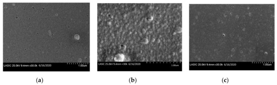 The surface morphology of the samples subjected to deep UV laser annealing was also observed from field emission scanning electron microscopy (FESEM) images. The images shown in Figure 3a,b indicate that the grain size of globular crystallites increased with an increase in energy density up to 990 mJ/cm2; in Figure 3c, the broken lattice structure shown was caused by the energy density exceeding 990 mJ/cm2. These FESEM images confirmed that higher laser energy density results in a broken lattice structure, resulting in degradation in crystallinity.
