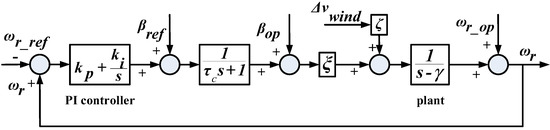 According to (2) and (6), the WT model is nonlinear. A linearized model is necessary for the pitch controller. At the optimum point, the Taylor series expansion of (6) can be expressed as (7) [17]. The subscript op denotes at the optimum point:
