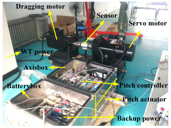 There are two types of power supplies for the pitch controllers of the WT power: DC 24 V and an uninterrupted power supply (UPS, DC 24 V). In normal mode, the pitch controller uses the WT power: DC 24 V, and the pitch actuator including the servo motor uses the WT power. In emergent mode, the pitch controller uses the UPS, and the pitch actuator uses the backup power. In fast mode, the pitch system generally uses the WT power unless the voltage of the WT power is lower than a threshold value. However, this fault will trigger more WT faults.
