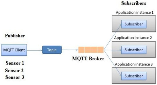 For example, if an MQTT client (publisher) has three sensors (such as temperature, pressure and humidity) and we need to send each sensor reading to a specific application instance client, (for example, sensor_1 sends to application instance_1, sensor_2 sends to application instance_2 and sensor_3 sends to application instance_3), we must send three different messages from the publisher, and each message has a unique topic.