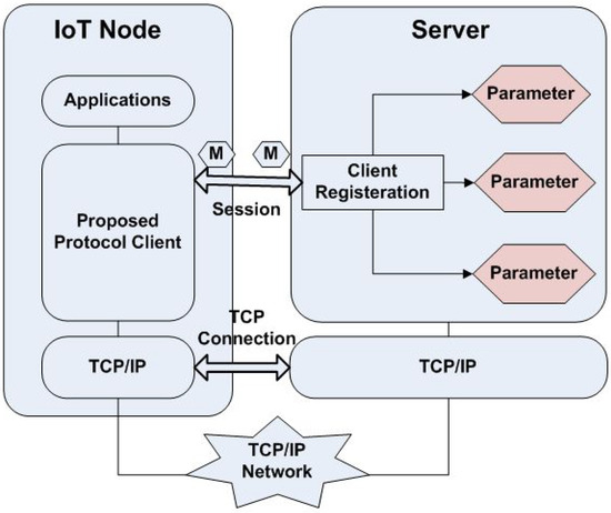 Figure 29. Multi-functional communication. - Reliability: The proposed protocol is based on the TCP protocol, which adds a sort of physical layer of reliability. One of the protocol frames is called the acknowledgment frame; this frame is required by the receiving node to acknowledge the reception if it succeeded—the server also sends this frame to acknowledge the message received from any IoT node. Moreover, the identification frame should be replied with an ACK; the registration and data frames have the choice of enabling the ACK to be expected from the receiver or not.