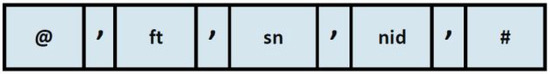 The identification frame is first transmitted by a node to declare and identify itself to the server. This phase is done by using a specific identification number (ID), and the system should wait until receiving the ACK message from the broker server. After that, each node can transmit (publish) or receive (by re-publishing from the server) frames. The frame structure needed for the identification node is shown in Figure 11. This frame is used in sensor nodes, actuator nodes, monitor nodes and hybrid or normal nodes. The function of this frame is similar to the “connect” message in the MQTT protocol.