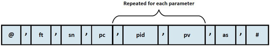 With the data frame, the node can share and publish its data to other clients (nodes), as shown in Figure 14. The data frame has multiple parameters, such as a count field (PC), an ID (PID) and a value (PV). These parameters must be registered to use PID. Furthermore, the ID should be transmitted at the beginning of the process. This frame is used in sensor nodes, monitor nodes and normal or hybrid nodes. The function of this frame is equivalent to the “publish” message in the MQTT protocol, but it supports multi-topic messages.