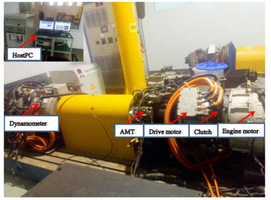 In general, HEV adopts the model-based development process, including the off-line simulation, the rapid prototyping, the hardware-in-the-loop simulation, the bench test, and the real vehicle calibration. The role of the test-bed played in the process includes: (1) measuring the performance parameters of components and verifying the reliability of the powertrain of HEV; (2) providing a platform to verify the developed hybrid control strategy; (3) accurate assessment of vehicle dynamics, economy, and emissions performance. In conclusion, the test-bed can comprehensively evaluate the performances of components, powertrain, and energy management strategies of HEV, which has become an essential means to reduce the development cost and improve development efficiency.