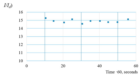 In [24,37,40], the effect of surfactants on the hydration process acceleration was studied. Therefore, we will also analyze this effect in our experiments, based on our key point that the rate of interphase surface renewal has the greatest effect on the intensity of the hydrate synthesis process. The studies were performed in the module (Figure 1b). By changing the number of mixer revolutions, we observed fewer changes in the mass transfer intensity (Figure 4). This result is attributed to the constant renewal of the interpose surface. However, with time, the surface still forms a hydrate crust and the mass transfer processes slow down.