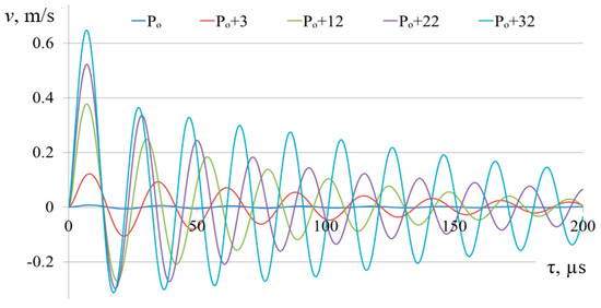 Figure 10 shows that with increasing pressure, the amplitude of the bubble velocity oscillations increases, and the oscillation frequency increases. The oscillation amplitude damping is slower as the amount of energy stored by the bubble increases.