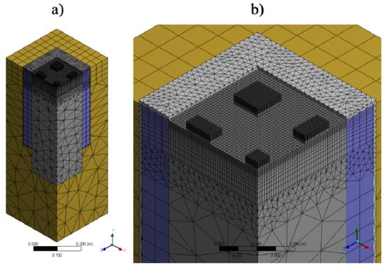 (a) Domain of the finite element model used to predict the annual production of the STEG; (b) detail of the mesh.