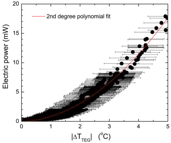 with a square of the correlation coefficient = 0.985. In the results section, all values below < 0.173 K were ignored in terms of power production (positive root of Equation (13)).