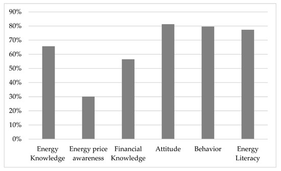 Energy and financial knowledge, energy price awareness, attitude, behavior and energy literacy levels.