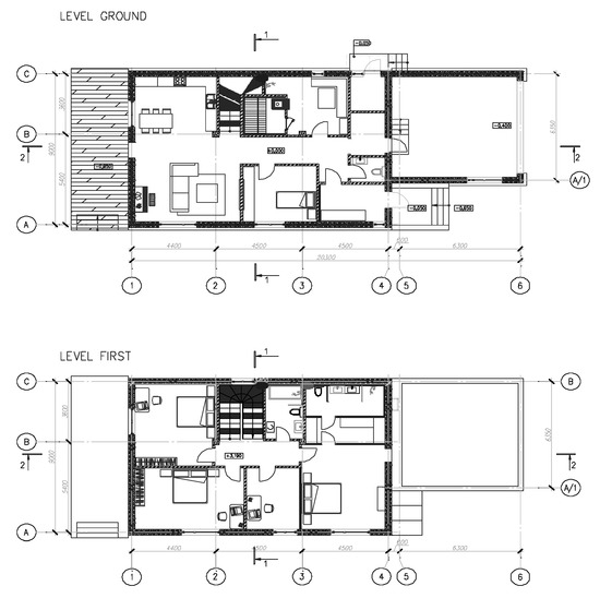 Figure 2 shows a typical single-family building which are becoming very popular in residential areas. The house consists of two floors connected by a stair. These details are relevant due to the potential creation of down-to-up air-flow, specially when under ceiling areas are rehabilitated. These houses appear in different dispositions where the most common is a multi-family land with one or two rows of sided single-family houses. In this case, houses do not have windows in two laterals in general. In other cases, houses are arranged as sided pairs. In our investigation, we searched for data basis corresponding to houses with similar disposition.