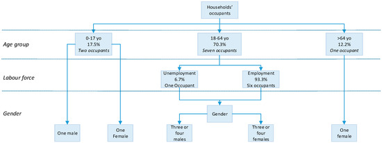 We apply the capacity model based on the Amsterdam’s age groups share in Figure 1 for selecting which household profiles to be modelled. The main goal is to determine the number of the occupants’s profiles to be modelled as shown in the following expression of Equation (5):