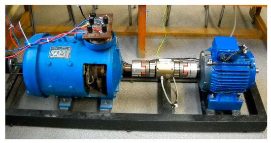Input signals were provided to the analog inputs of a National Instruments BNC 6259 measurement card. Signals were registered for 60 s with a 10 kS/s sampling frequency. In order to minimize the electromagnetic distortion of the signal, shielded cables were used. Before each measurement, the shafts of the motor and loading machine were aligned in order to eliminate mechanical vibration caused by shaft misalignment. In all cases, the machine was loaded in such a way that the stator current was 5 A.