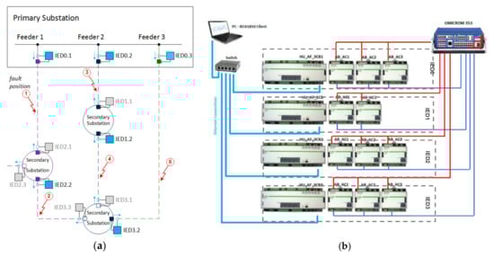Several approaches have been proposed in the past to improve this condition [2,3,4,5,6]. One of the most prominent solutions consists of limiting the de-energized area as close as possible to the source of the fault, i.e., to be “selective” with respect to its position. This can be obtained by placing a protection device and a breaker in a selected number of MV/LV substations. The actions of the IEDs placed in different locations must be coordinated in order to avoid multiple breaker openings, which may lead to an even worse scenario. This coordination approach between IEDs installed in different locations is called logic selectivity [7,8]. Logic selectivity sets severe constraints on the communication network, as analyzed in [9,10].