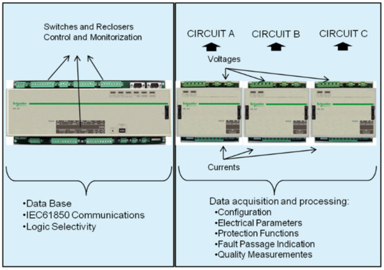 To optimize these indicators, DSOs are enhancing their automation systems, which have been—so far—mainly confined to the HV/MV substations. Indeed, in the traditional configuration of the automation system, the only element able to determine the fault is the intelligent electronic device (IED), usually located at the beginning of the MV line. This device—containing the so-called protection functions (PFs)—determines the presence of a fault on the MV network and opens a breaker—which is the power equipment able to interrupt the current flow, even during the extreme conditions occurring during a fault—in order to avoid permanent damage to power assets. This could result in a very large de-energized area, with all customers belonging to the opened feeder affected by the voltage interruption and with a significant impact on the continuity of the service indicators.
