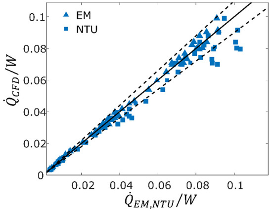 3.4. Numerical Validation of EM and P-NTU Models
