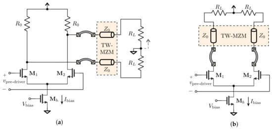 - Cignoli, M.; Minoia, G.; Repossi, M.; Baldi, D.; Ghilioni, A.; Temporiti, E.; Svelto, F. 22.9 A 1310 nm 3D-integrated silicon photonics Mach-Zehnder-based transmitter with 275 mW multistage CMOS driver achieving 6 dB extinction ratio at 25 Gb/s. In Proceedings of the 2015 IEEE International Solid-State Circuits Conference—(ISSCC), San Francisco, CA, USA, 22–26 February 2015; pp. 1–3. [Google Scholar] [CrossRef]