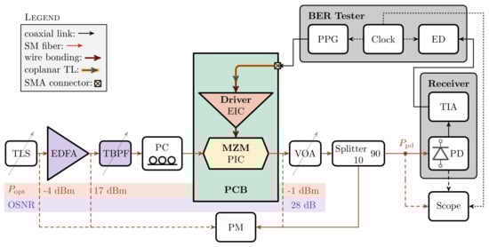 - Temporiti, E.; Ghilioni, A.; Minoia, G.; Orlandi, P.; Repossi, M.; Baldi, D.; Svelto, F. Insights Into Silicon Photonics Mach–Zehnder-Based Optical Transmitter Architectures. IEEE J. Solid-State Circ. 2016, 51, 3178–3191. [Google Scholar] [CrossRef]