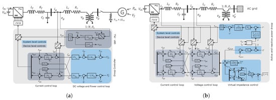 AC-DC converters single line diagrams: (a) rectifier control scheme (b) grid-forming scheme.
