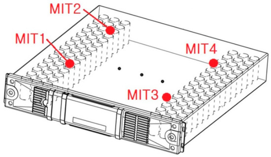 Figure 3 displays the resistance change in a NTC thermistor and a MIT sensor according to temperature. Unlike the MIT sensor, the NTC thermistor does not exhibit a significant change in resistance at 25 °C room temperature, and is practical, as 70–80 °C is the first-start temperature range at which a battery can catch fire. The problem with the NTC thermistor is that it is difficult to clearly detect the change in its resistance value at the fire-start temperature [20,21,22]. By contrast, the proposed MIT sensor’s resistance decreases abruptly at a temperature of around 70 °C. This facilitates the accurate detection of a rise in temperature preceding the fire-start temperature and the prevention of fires and explosions in the battery [15,18].