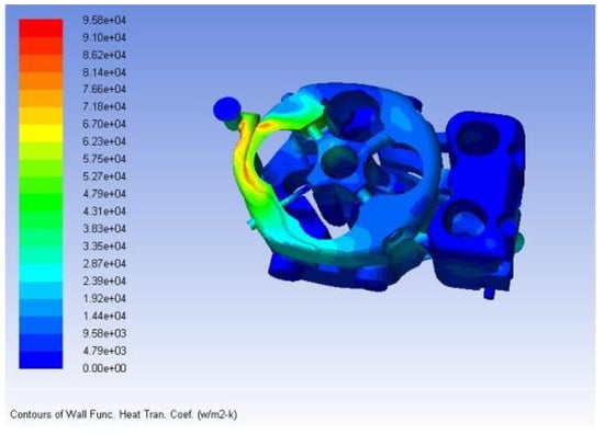 Contours of the cooling water jacket’s heat transfer coefficient.
