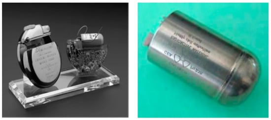 In 1966, small plutonium cells (very small RTGs fed with Pu238) were used in implanted pacemakers to ensure a very long battery life, as shown in Figure 7 []. In 2004, about 90 of them were still in use. Many companies have manufactured nuclear-powered pacemakers, including ARCO (Perma-grain), Medtronic (Laurens-Alcatel), Gulf General Atomic, Cordis (Telektronic, Accuffix), American Optical, Technologie Biocontrol (Coratomic) and Medical Devices, Inc (MDI) []. After the development of lithium batteries, the market for nuclear batteries dried up [].