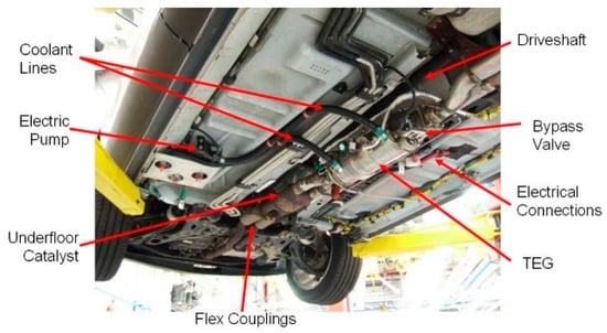 - Mori, M.; Yamagami, T.; Sorazawa, M.; Miyabe, T.; Takahashi, S.; Haraguchi, T. Simulation of Fuel Economy Effectiveness of Exhaust Heat Recovery System Using Thermoelectric Generator in a Series Hybrid. SAE Int. J. Mater. Manuf. 2011, 4, 1268–1276. [Google Scholar] [CrossRef]