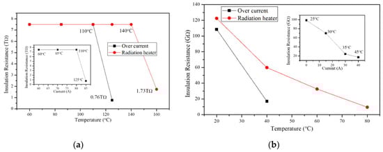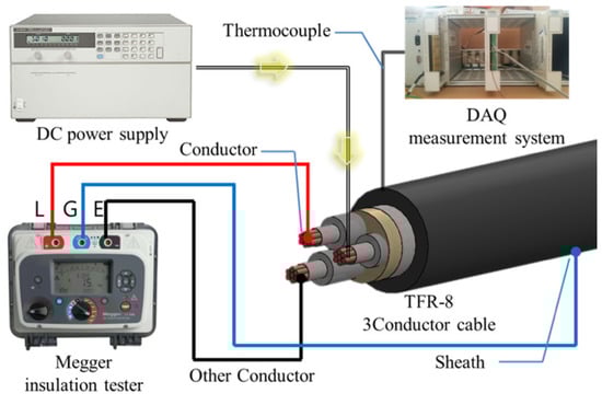 - Kang, S.-D.; Kim, J.-H.; Kim, J.-H. A Study on the Insulation Resistance in Cable with Rising Temperature. J. Korean Inst. Illum. Electr. Install. Eng. 2018, 32, 72–77. [Google Scholar]